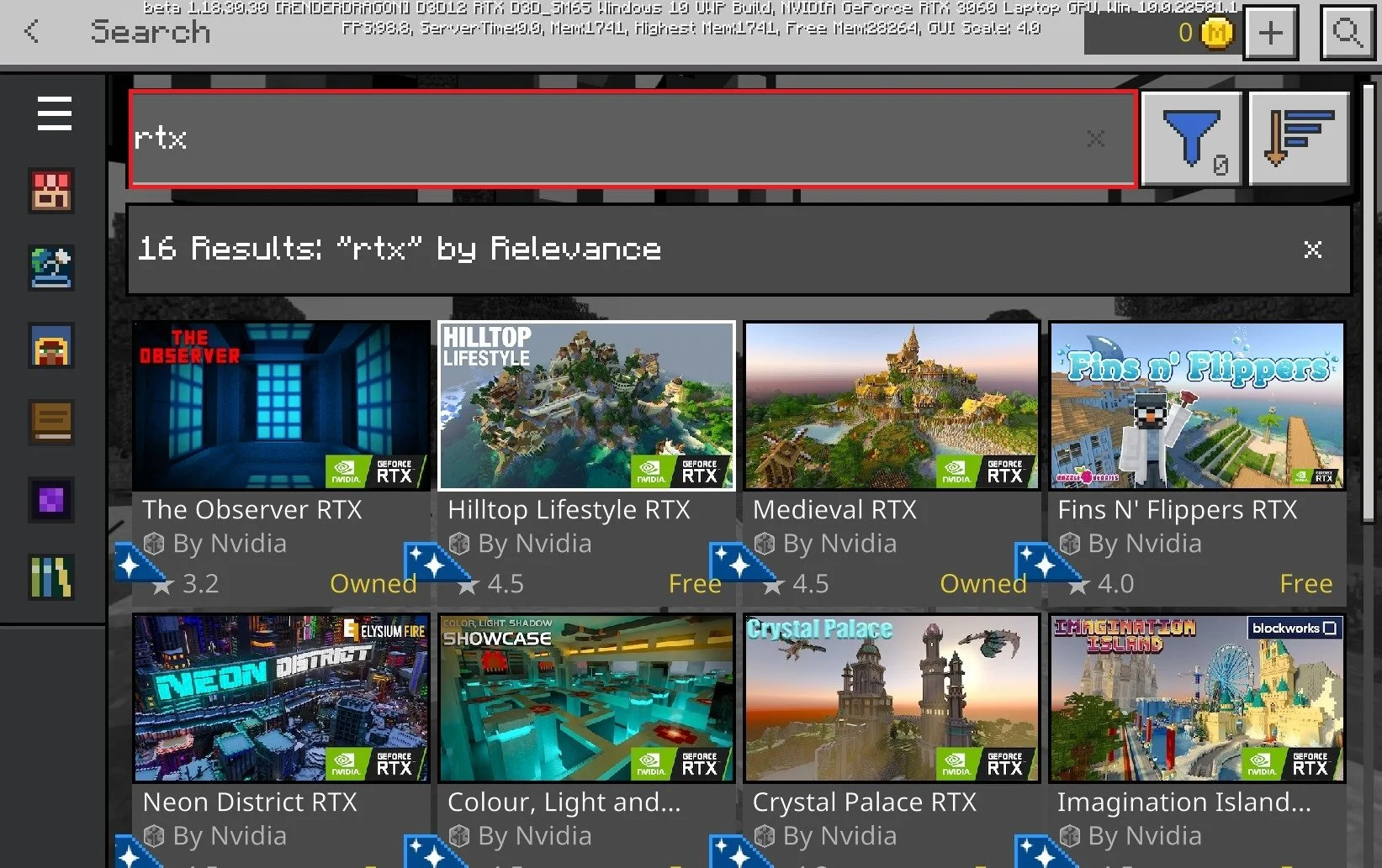 Minecraft Marketplace > RTX