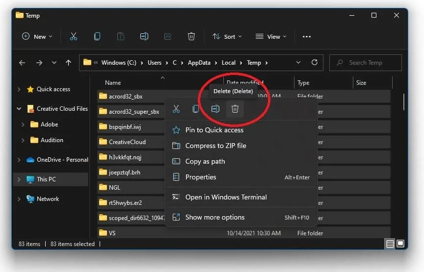 A new folder will open up. Delete the content of your temporary files folder. Sometimes, this can take a few minutes if you haven’t done this before. Some files will most likely stay in your temp folder, as these are still in use by your programs. To thoroughly delete these files, you should also empty your recycle bin.