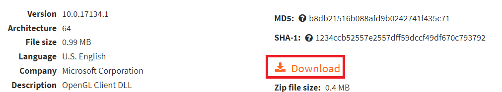 Navigate to the DLL file download page. Download the OpenGL Client DLL file for the 64 or 32-bit based operating system. In my case, I will download the 64-bit version. It may take a couple of seconds for the download to start, and you can find the ZIP file in your downloads folder.