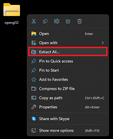 Drag and drop this file to your desktop. Next, right-click the ZIP file, select Extract All, and then Extract. A new folder will open up containing the missing DLL file.