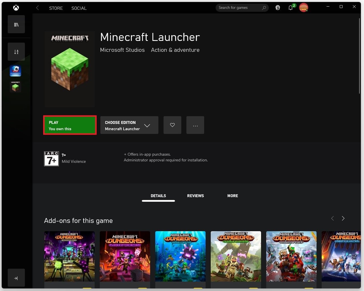 Open up your Xbox app. Ensure you are logged in with your Microsoft account. Alternatively, you can use the Microsoft Store app on Windows 10 or 11. After logging in with your account, search for Minecraft. This will allow you to download and install Minecraft from.