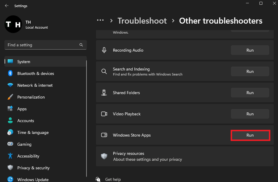 If you're still facing the Minecraft launcher update error, don't worry - there are still avenues to explore. Return to your Windows settings and select 'System'. From here, choose 'Troubleshoot', followed by 'Other Troubleshooters'. Scroll down and initiate the 'Windows Store Apps' troubleshooter. This feature is designed to diagnose and resolve issues with apps downloaded via the Microsoft Store, like the Minecraft Launcher.