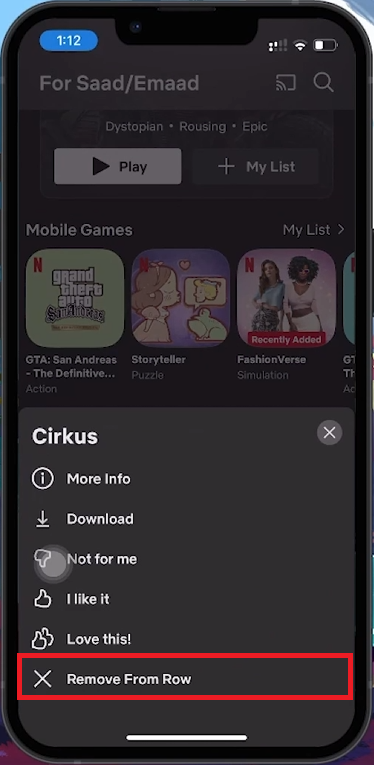 Simply navigate to the title in the Netflix app, tap on the three dots, and select 'Remove from row’.