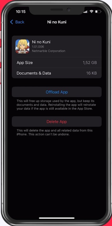 iPhone Settings > General > iPhone Storage > Ni no Kuni