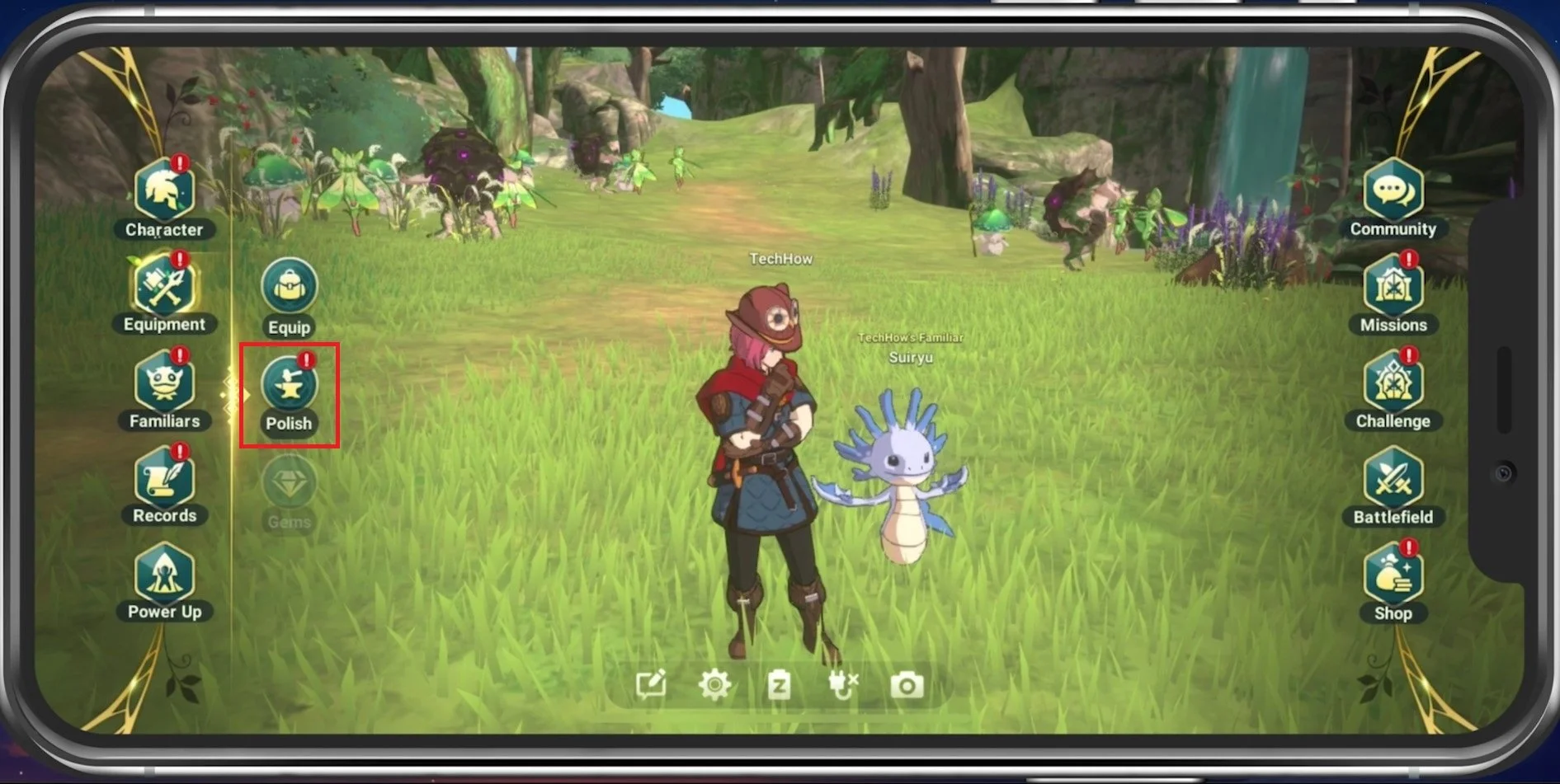 While in-game, tap on the burger menu on the top right of your screen. Select Equipment and then Polish.