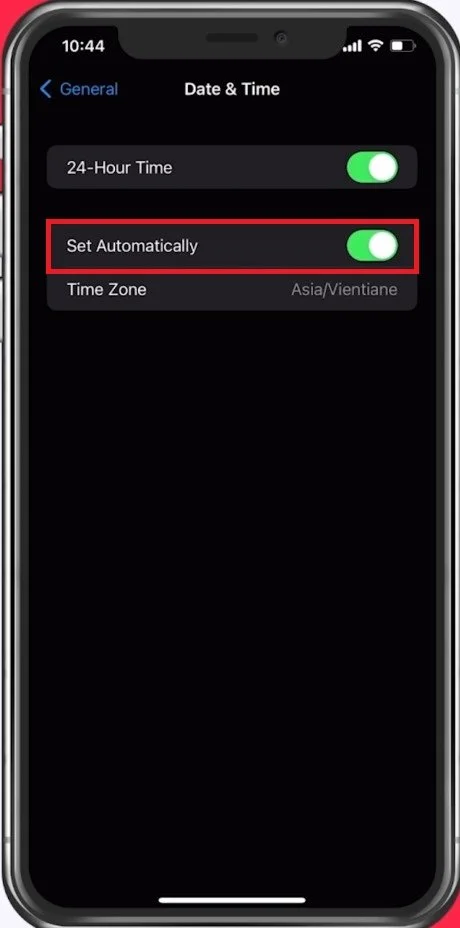 On iOS devices, tap on General and then on Date & Time. Make sure that your device sets the time automatically, so simply enable the Set Automatically option.