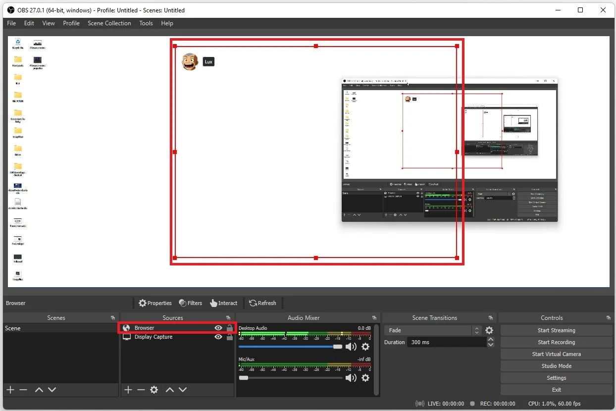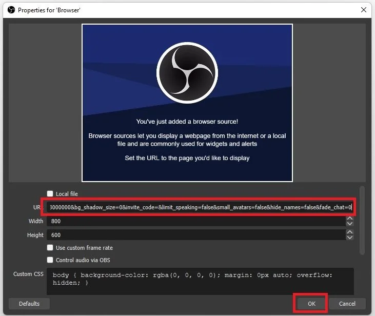 When clicking on Ok, you should see your avatar when speaking, as well as other users who are talking in the same voice chat channel. Use the handles of this source to resize your Browser source. You can also change the settings on the Streamkit website, which will automatically be applied to OBS Studio.