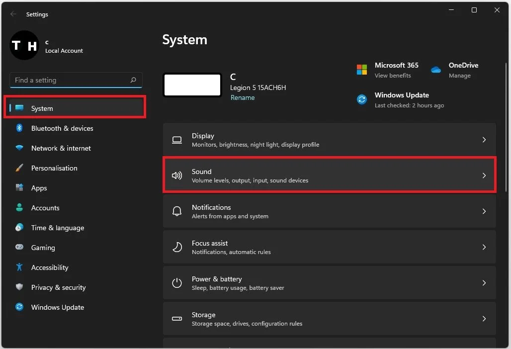 Close your Device Manager and open up your native Windows settings. Under System, select Sound.