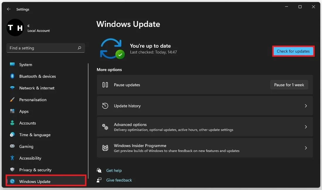 If these options are not available to you, ensure your Windows version is up to date. Under Windows Update, click on Check for Updates, and after downloading the latest update, restart your PC.