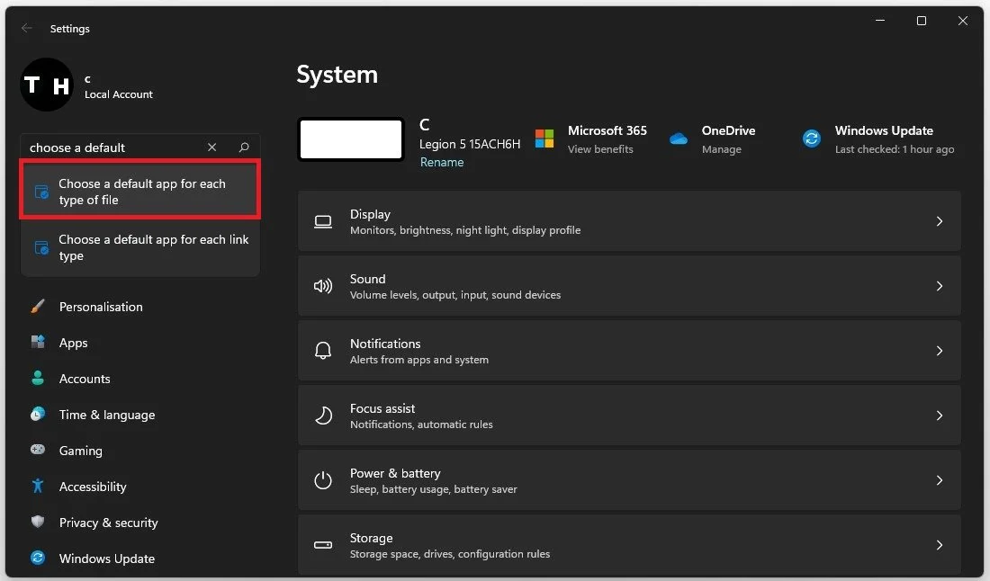 Choose a default app for each type of file