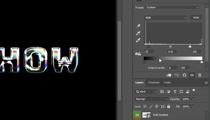 Edit the colors, contrast, luminosity and levels of your chrome effect