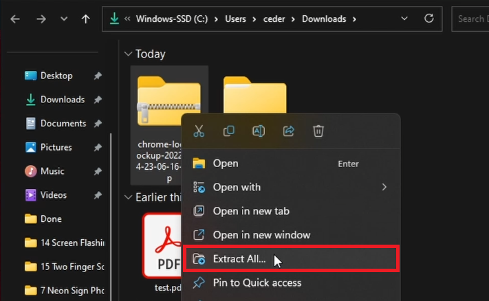 Choose 'Extract All...' to unpack the file in your downloads folder.