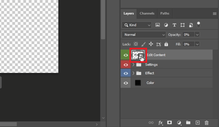 Double-click the “Edit Content” thumbnail. A new tab will pop up showing a text layer.
