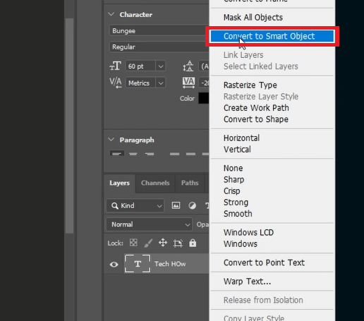 Time to make it yours! Delete the existing text layer labeled “Design” and swap it with your own text or image. For instance, I'll create a new text layer and key in “Tech How”.