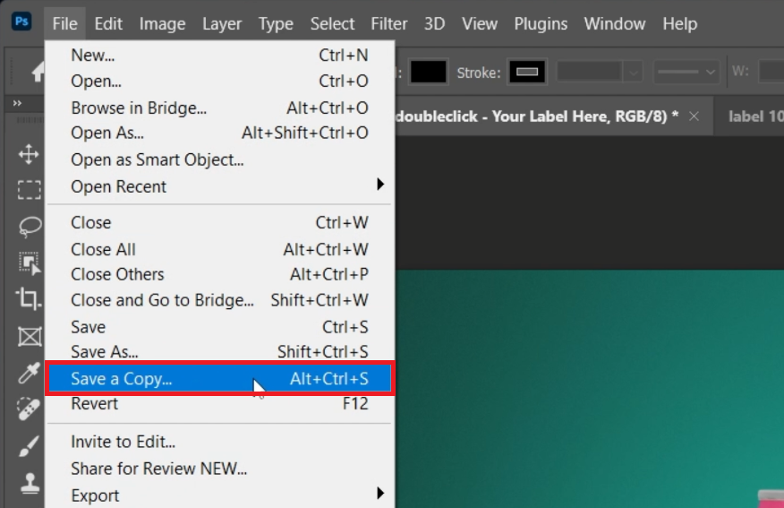 Photoshop > File > Save A Copy…