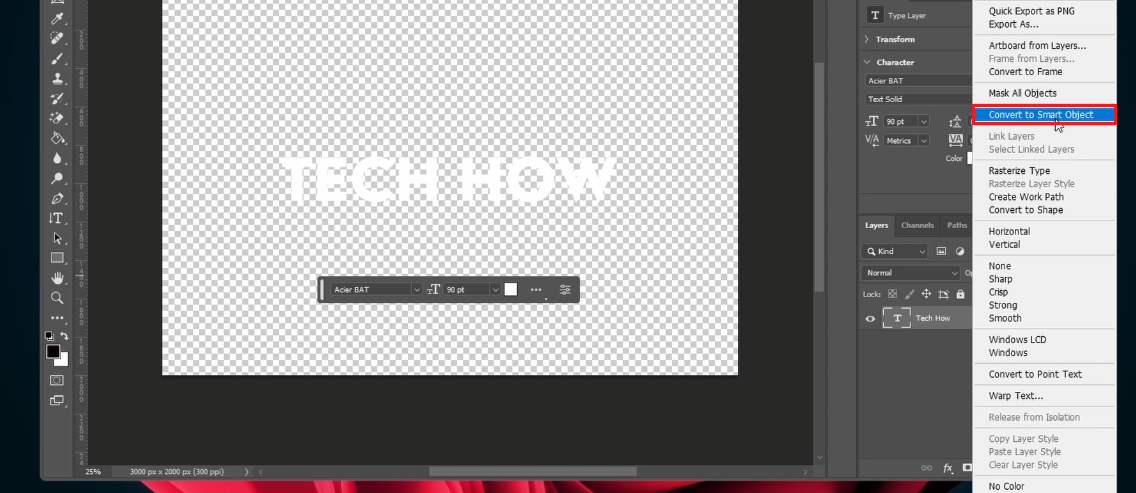 Swap out the default text with your chosen words. For example, I've chosen "Tech How".