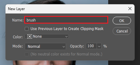 Now that we've successfully imported all the necessary tools, it's time to put the Painting action into play. Let's begin by setting up a new layer. To do this, navigate to 'Layer > New > Layer', and name this new layer 'brush'.