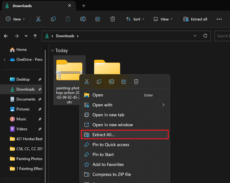 Upon extraction, a new folder will emerge, housing your newly acquired Photoshop Painting Action. Now, you're all set to infuse your images with a touch of painted elegance. Enjoy exploring this new facet of your creative journey in Photoshop!