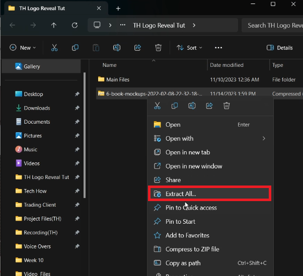 For Windows Users: Locate the downloaded .zip file in your Downloads folder. Right-click on it and select 'Extract Here' or 'Extract to [folder name]'.