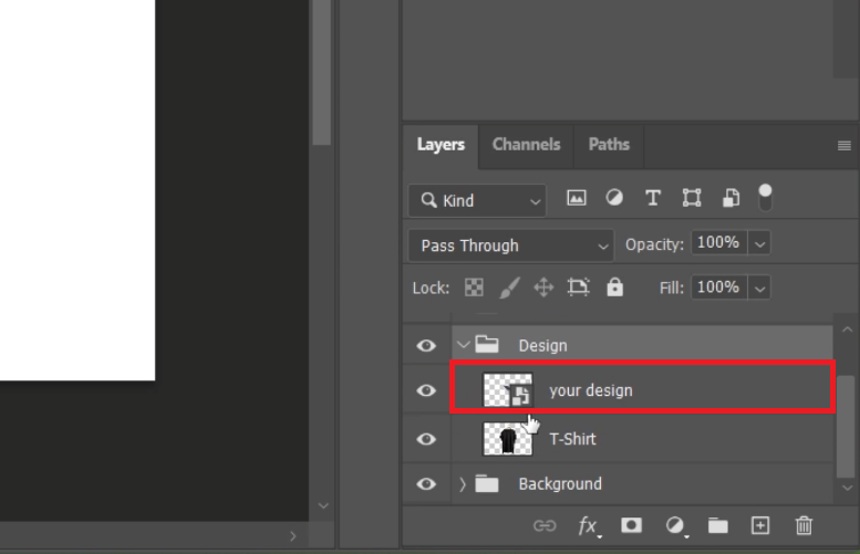 Click on the eye icon next to this layer to hide it, making your design the primary feature on the T-shirt.