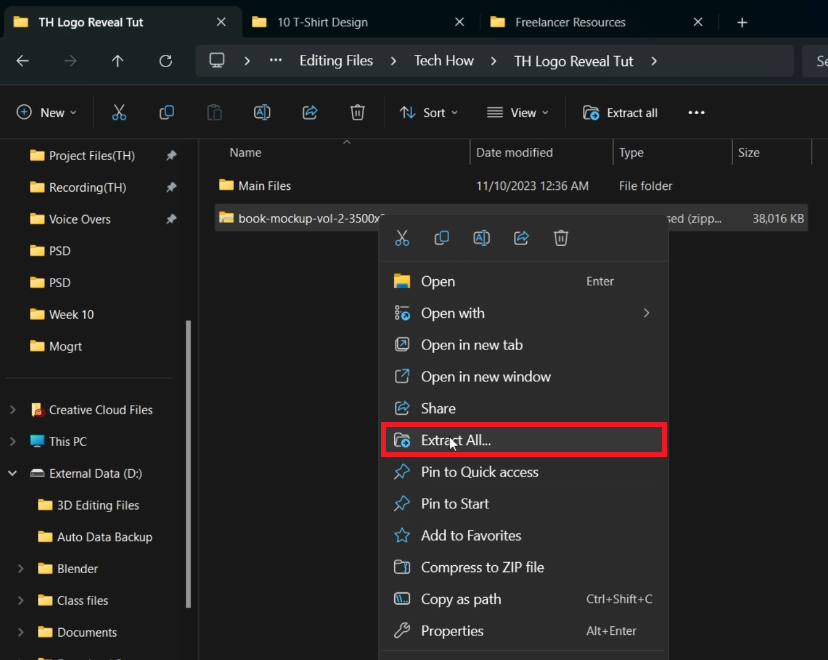 On Windows: Right-click on the downloaded .zip file and select the option to extract it in your downloads folder.