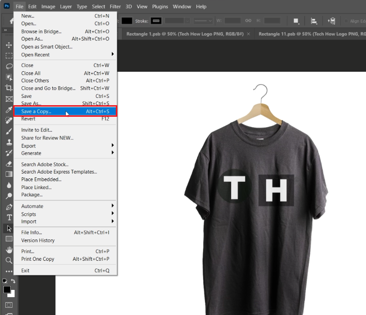 Photoshoop > File > Save a Copy