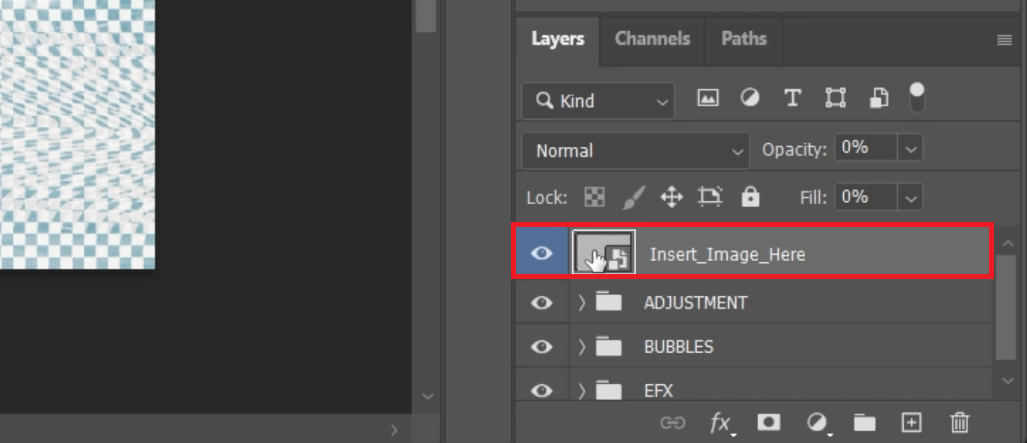In the layers panel, locate the smart object layer, typically marked for easy identification, and double-click it. This will open a new tab featuring a canvas with a placeholder image.