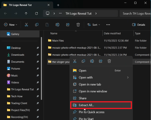 Right-click the .zip file.