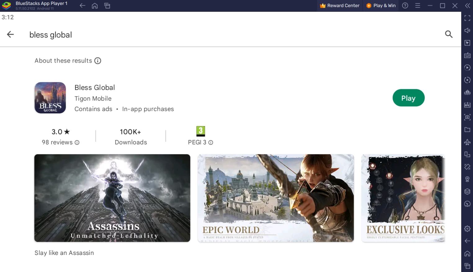 Open your Play Store and log in with your Google account. Search for Bless Global and download the game to your BlueStacks emulator. This might take a few minutes to complete depending on your network connection.