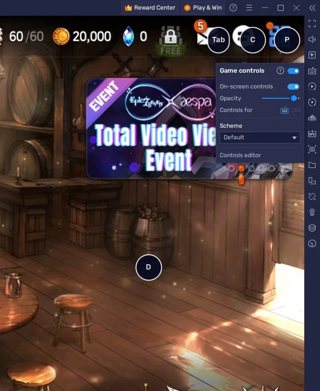 While in-game, click on the keyboard icon in your BlueStacks menu bar on the right-hand side. This will allow you to enable and disable the On-Screen Controls option. This will help you figure out which keyboard keys to play Epic Seven on your PC.