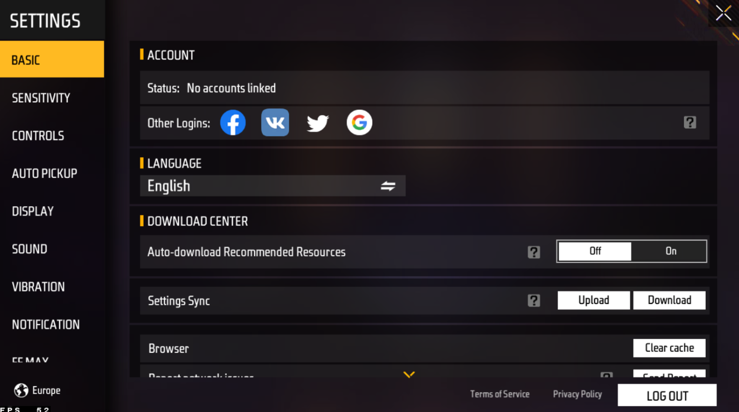 After completing the initial tutorial, navigate to your in-game settings. I will apply the best settings for my current setup, and you might need to adjust it to your preference. In the Basic section of your settings, I prefer to disable the Auto-download Recommended Resources option.