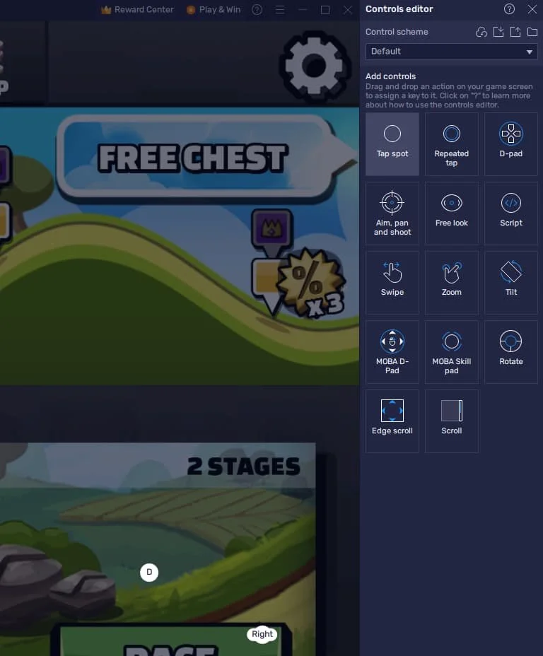 To customize the controls, click the keyboard icon in the BlueStacks menu bar, which will open the controls editor. From there, you can assign tap spots for braking and accelerating and save your changes.