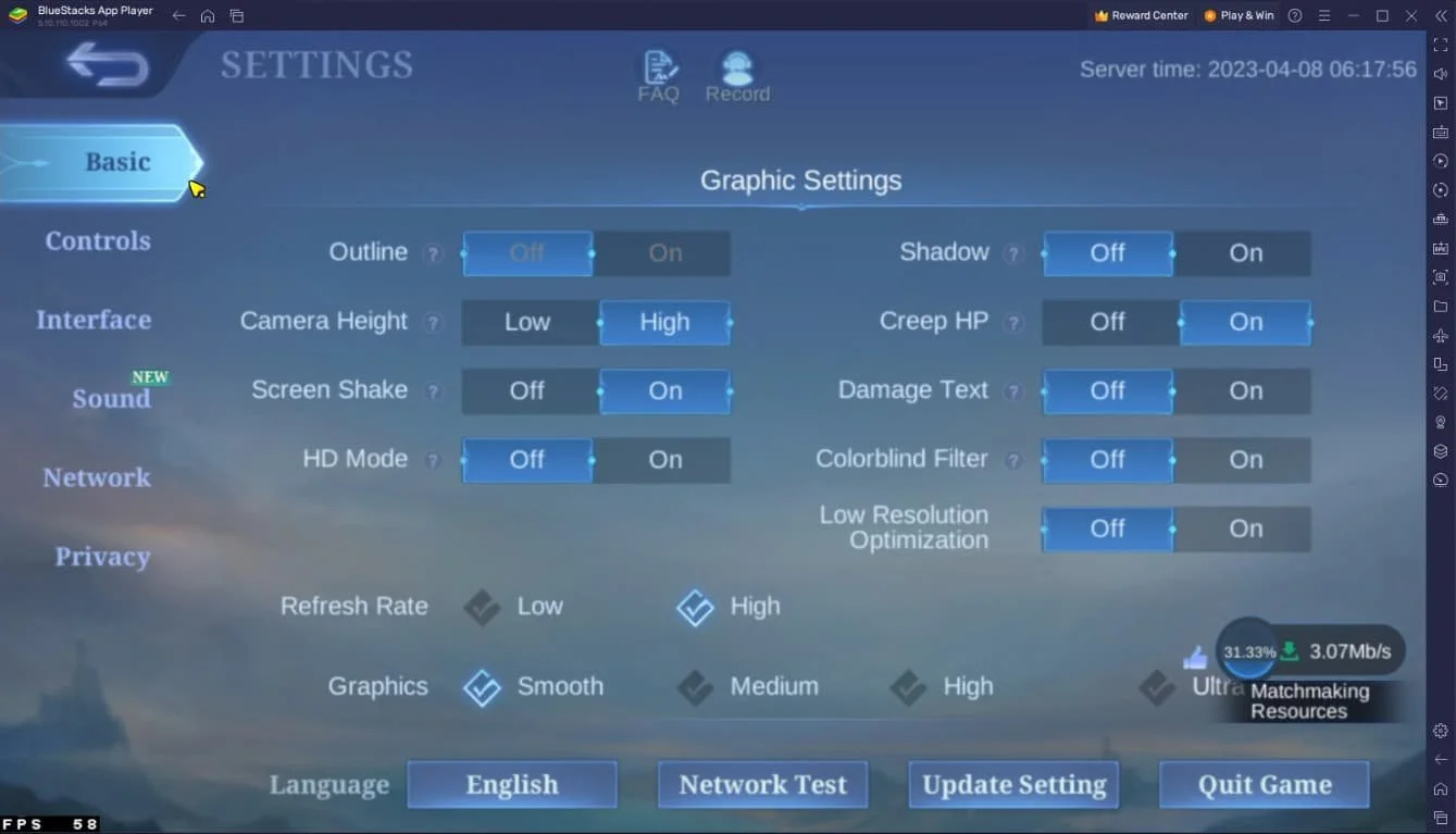 Once you've launched the game, navigate to your in-game settings to optimize your gameplay experience. If you face lag or performance issues while playing Mobile Legends on your PC, consider lowering the graphics preset and refresh rate in the Basic section.