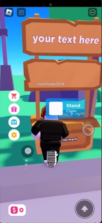 Setting up your stand is simple. Once you're in the game, locate a stall or stand labeled "Your Text Here" and claim it as yours. You can personalize it by renaming and initiating sales of items or goods, thus creating a lucrative venture within the game.