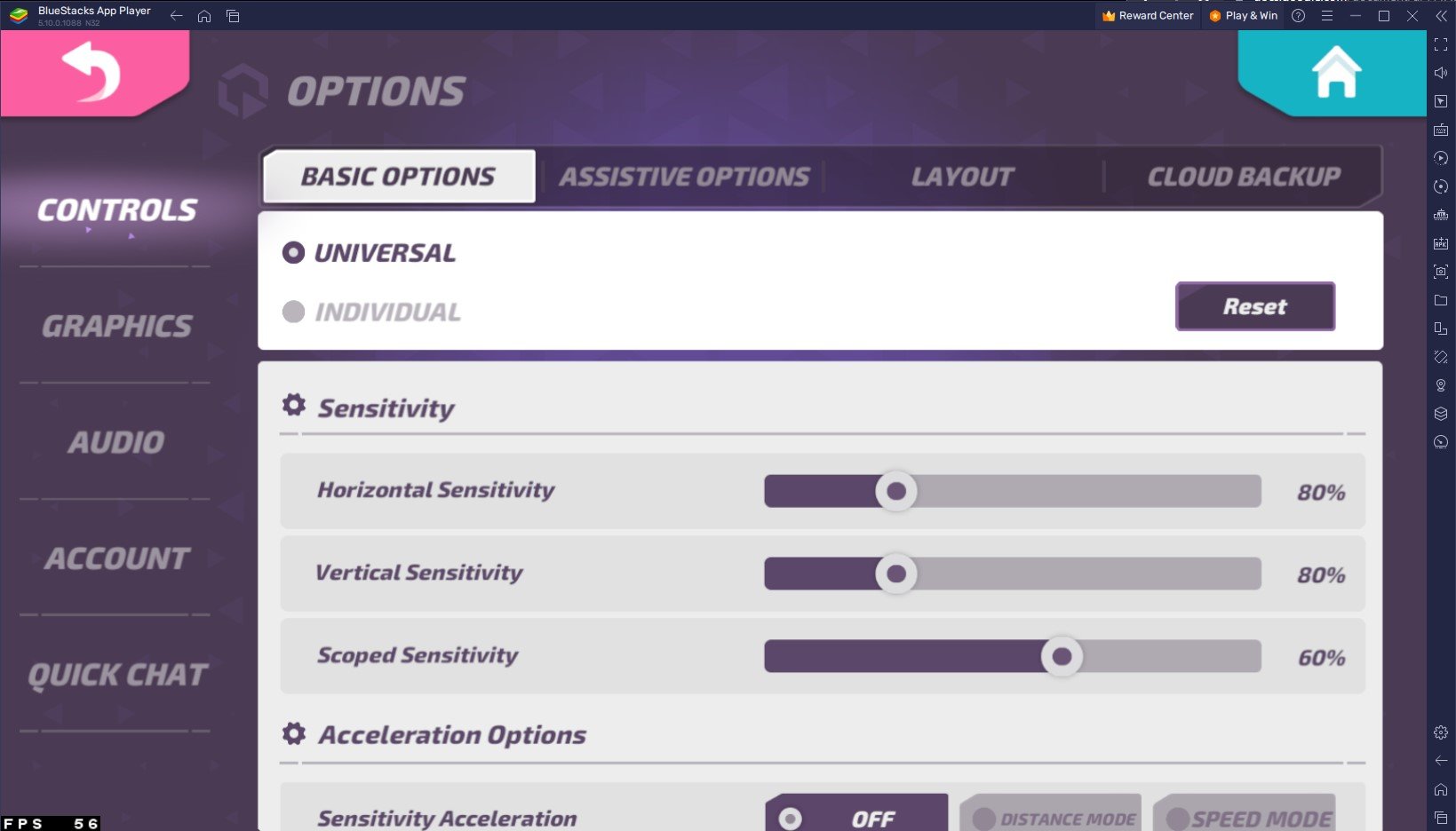 While in-game, navigate to your Options. In your Controls options, change your mouse sensitivity, and I suggest disabling Sensitivity Acceleration, which is great for touch screens but can be imprecise when using a keyboard and mouse. You may want to leave the Aiming Assist option enabled when playing on your PC for the first time.