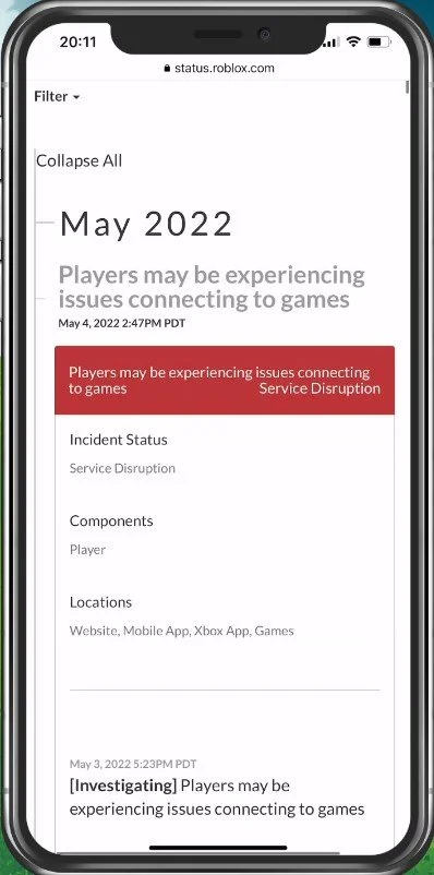 In case the problem persists, make sure that you are using a reliable network connection and that the Roblox servers are operational. Open up your favourite browser and navigate to status.roblox.com.