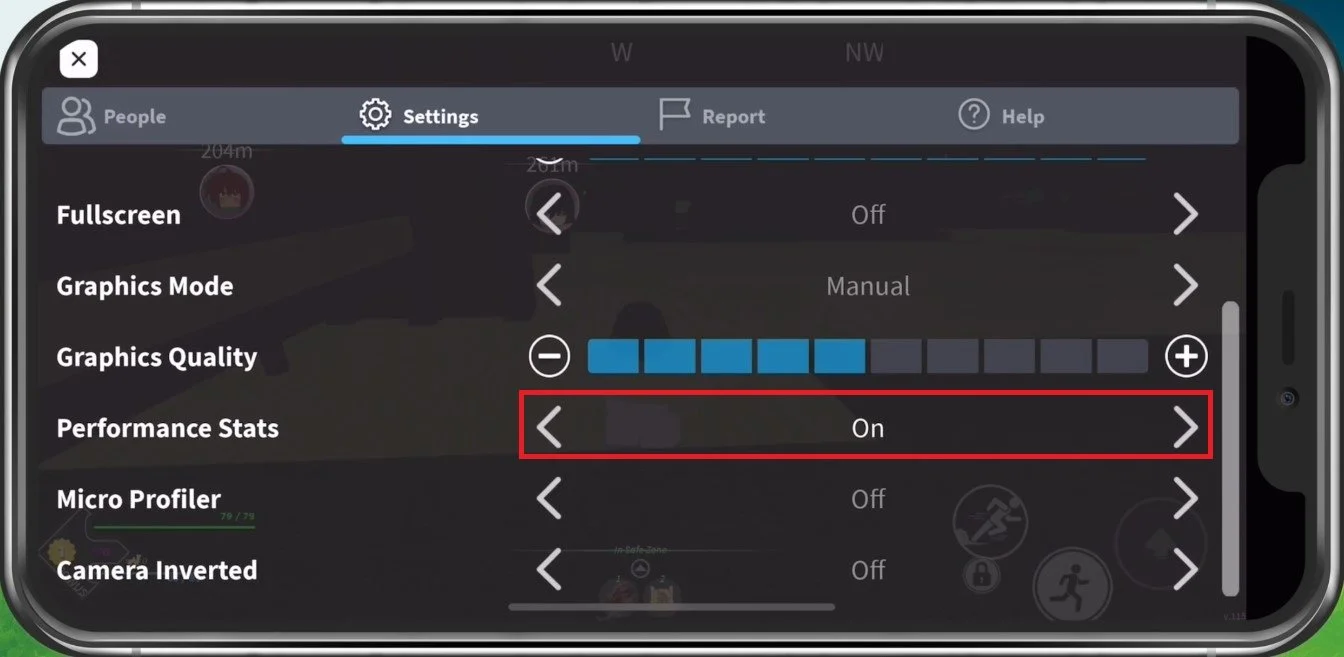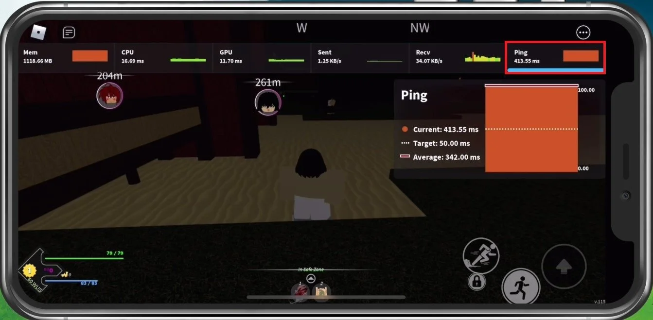 While playing Project Slayers on your mobile device, you can enable the Performance Stats setting to see your memory, CPU, GPU and network usage. This will allow you to preview your current latency, or ping.