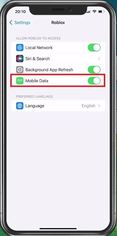 Next, scroll down until you find your Roblox settings. Here, make sure to enable the Mobile Data option. This will allow the game to utilise your cellular connection, which could be better than your current WiFi connection. You can then try to re-launch Project Slayers.