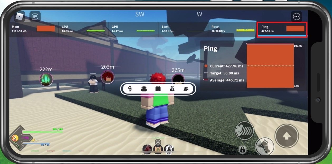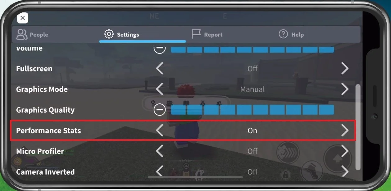 Sometimes, your menu will not show up if you use an unreliable network connection or when the game version is out of date. In your Roblox settings, make sure to enable the Performance Stats option. This will allow you to preview your current ping to your connected server.