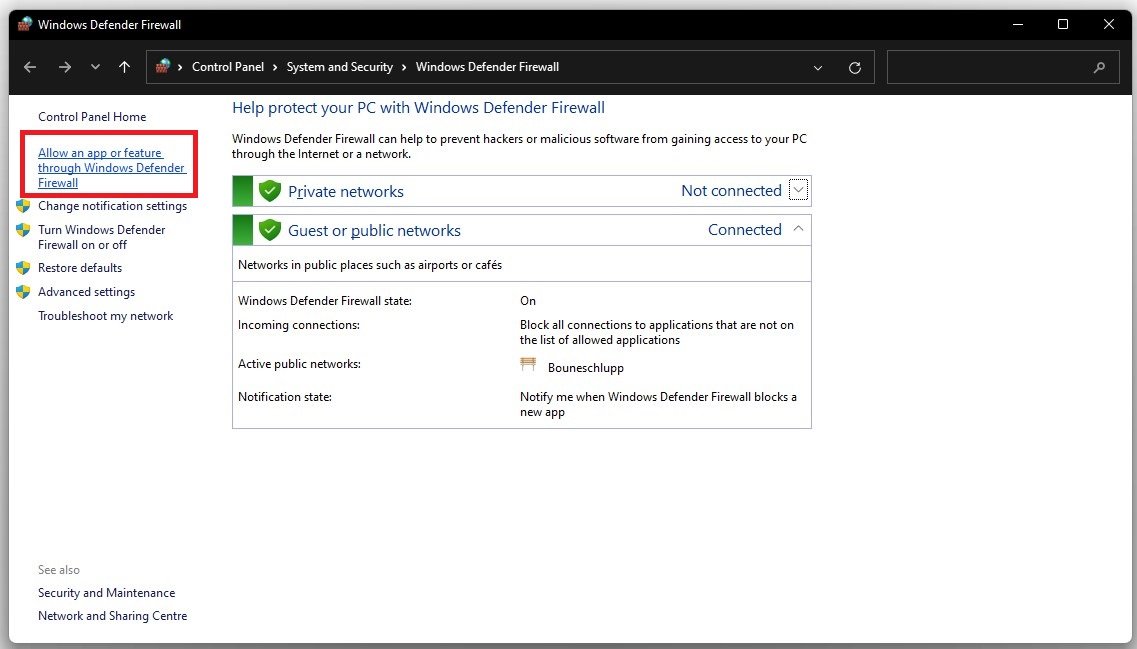 On the window, select Allow an app through firewall. Select Change settings, search for the PUBG: Battlegrounds application, and uncheck it. This will allow you to exclude the application from being blocked by your firewall and will, for some users, prevent the issue.