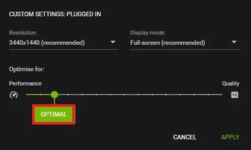 You also have the option to use custom settings when selecting the wrench icon. Use the slider system to reduce some options and change your display resolution and display mode in case you are using an abnormal screen resolution.