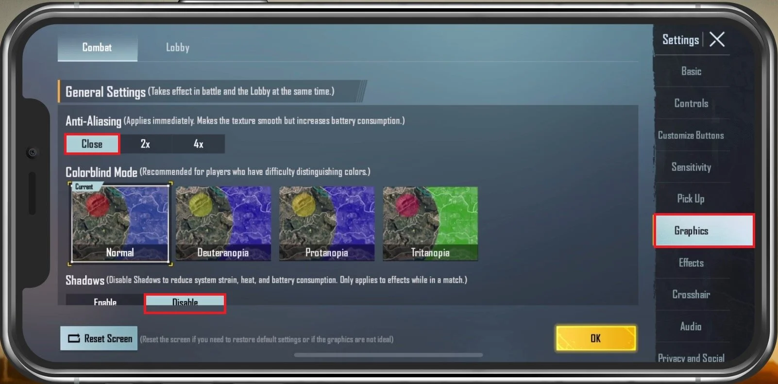Disable Anti-Aliasing if you want to decrease the battery consumption of the game. Disable Shadows, as they may distract some users and drain your battery and mobile gaming performance.