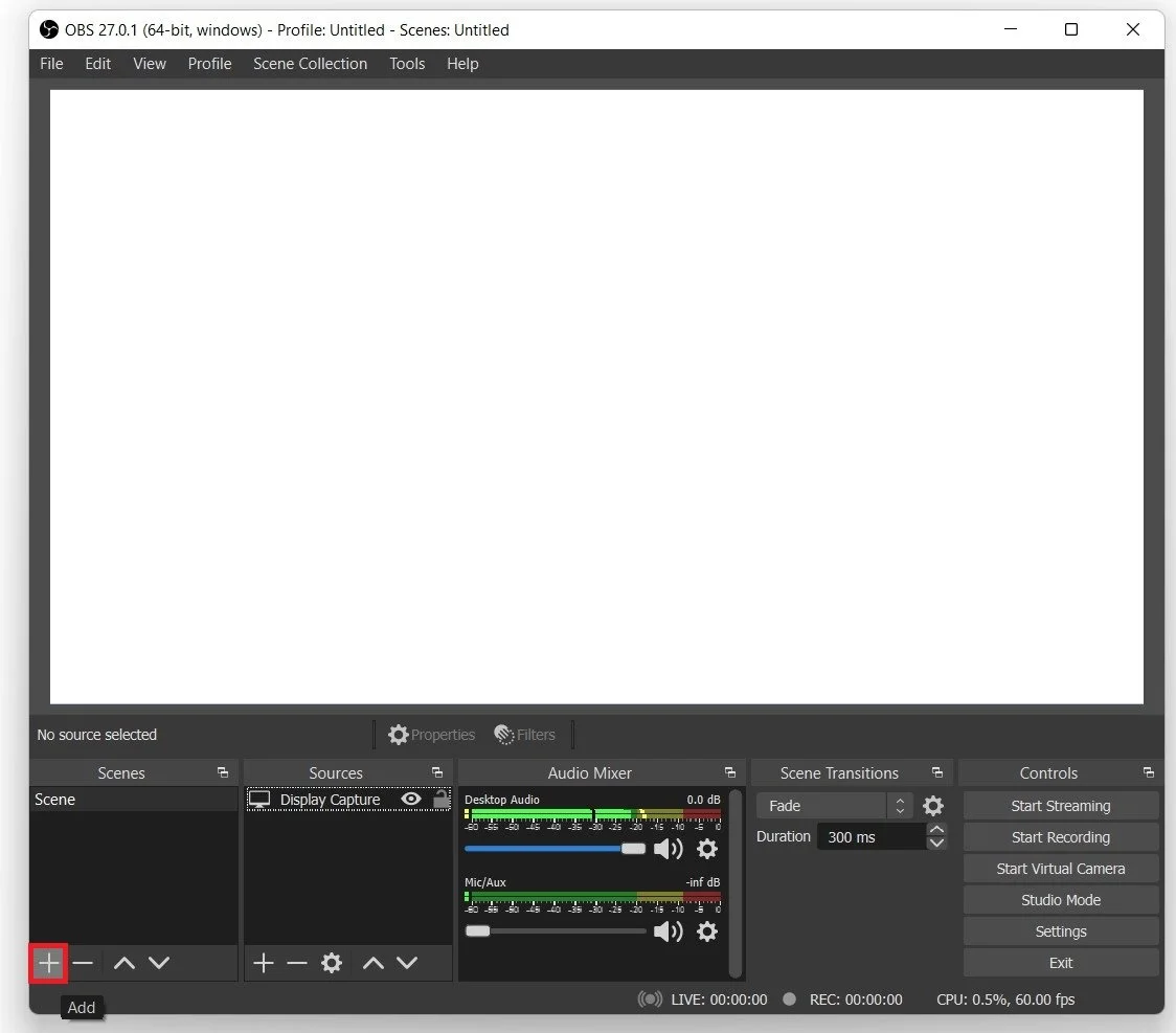 You can also rename your existing scene. Next, we will need to add a Display Capture source. Name it whatever makes sense for you.
