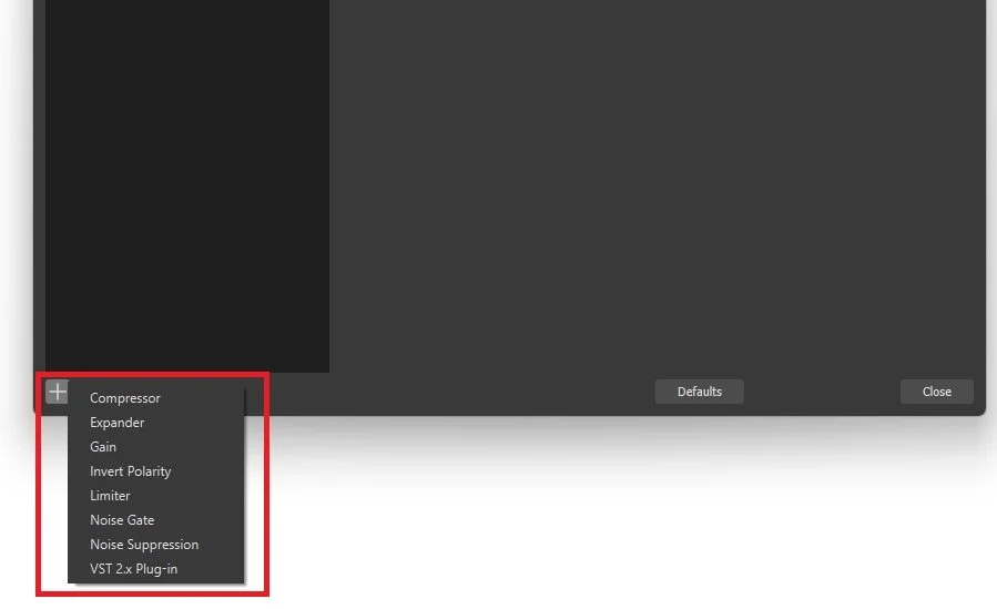 When clicking on the gear icon of your Microphone sound input, you can add filters that will allow you to improve your overall microphone quality by using a Noise Gate, Limiter, or Compressor.