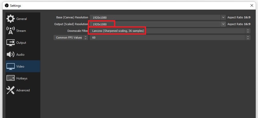 Under Video, you can rescale your output resolution if you wish to do so. For example, this can be helpful for users with a widescreen aspect ratio. We prefer the Lanczos Downscale Filter, as it will provide the sharpest recorded video, but you might want to reduce it to Bicubic if you’re using a low-end PC.