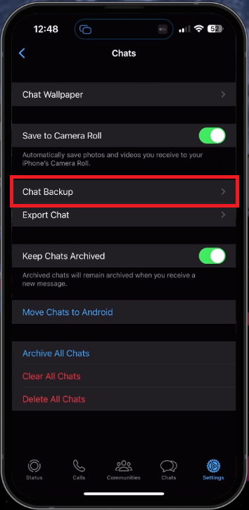 Within your WhatsApp app, head to the settings section and choose "Chats". Next, tap on "Chat Backup". From this point, you can start backing up your current WhatsApp chat history. You'll find options to schedule automatic backups and toggle the "Include Videos" option ON or OFF, depending on whether you want to save videos from your chats that might consume considerable storage space.