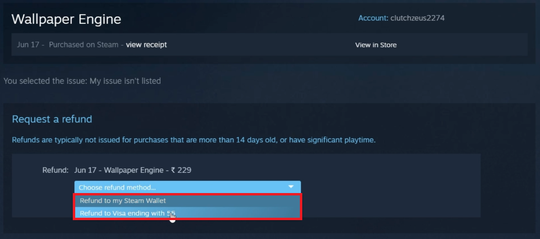 Request Refund for your Steam Purchase