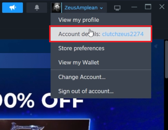 Launch the Steam client and click on your username located at the top right corner.
