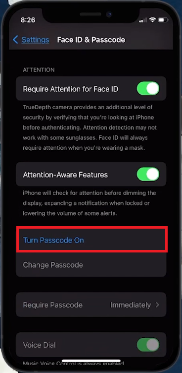 Face ID & Passcode > Turn Passcode On