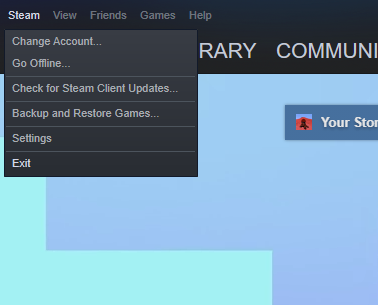 When this is done, you can close your Steam settings window, click on Steam again and select Exit. This will close the Steam launcher and all Steam processes running on your PC. After restarting the Steam launcher, you might be required to log back into your account, and then head over to your game library.